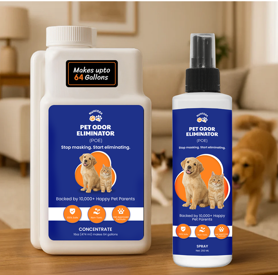 Say goodbye to lingering pet smells with one powerful spray. Nuressa neutralizes odors at the source—no masking, no harsh chemicals. Safe for pets, kids, and every surface in your home.